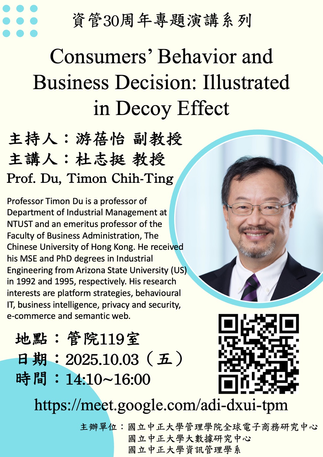 演講:Consumers’ Behavior and Business Decision: Illustrated in Decoy Effect